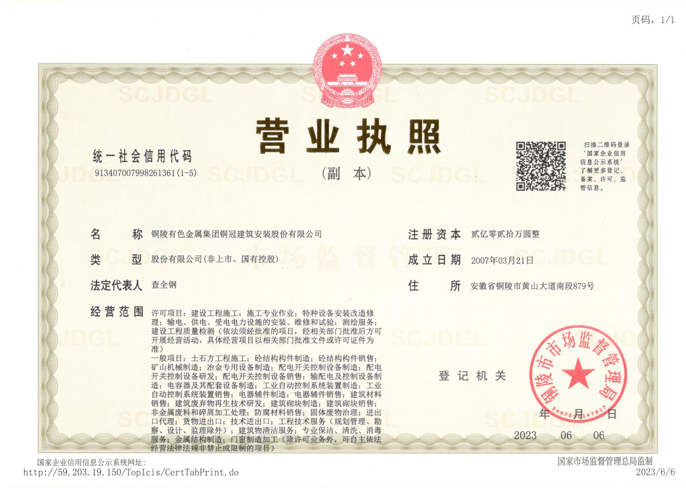 有色金屬工業(yè)建設(shè)工程質(zhì)量檢測(cè)機(jī)構(gòu)資質(zhì)證書